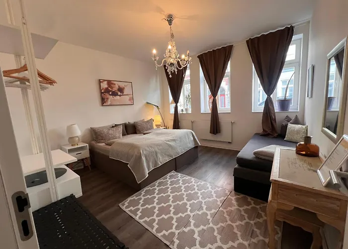 Located a 25-minute walk from Nord City Park, Cityperle Erfurt apartment overlooks the inner courtyard. This apartment offers private car parking on site and modern comforts like Wi-Fi.